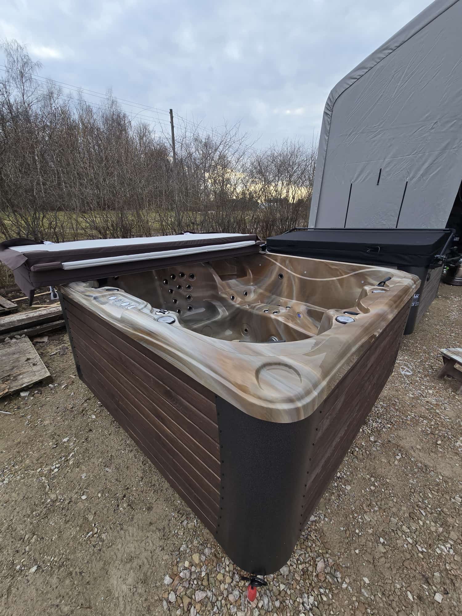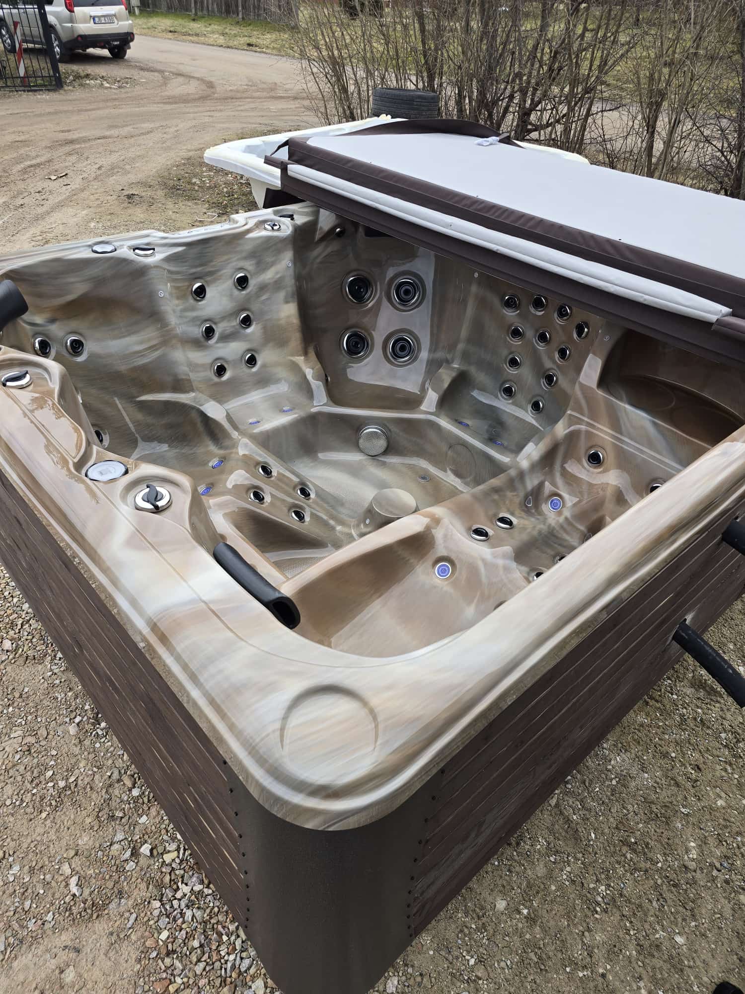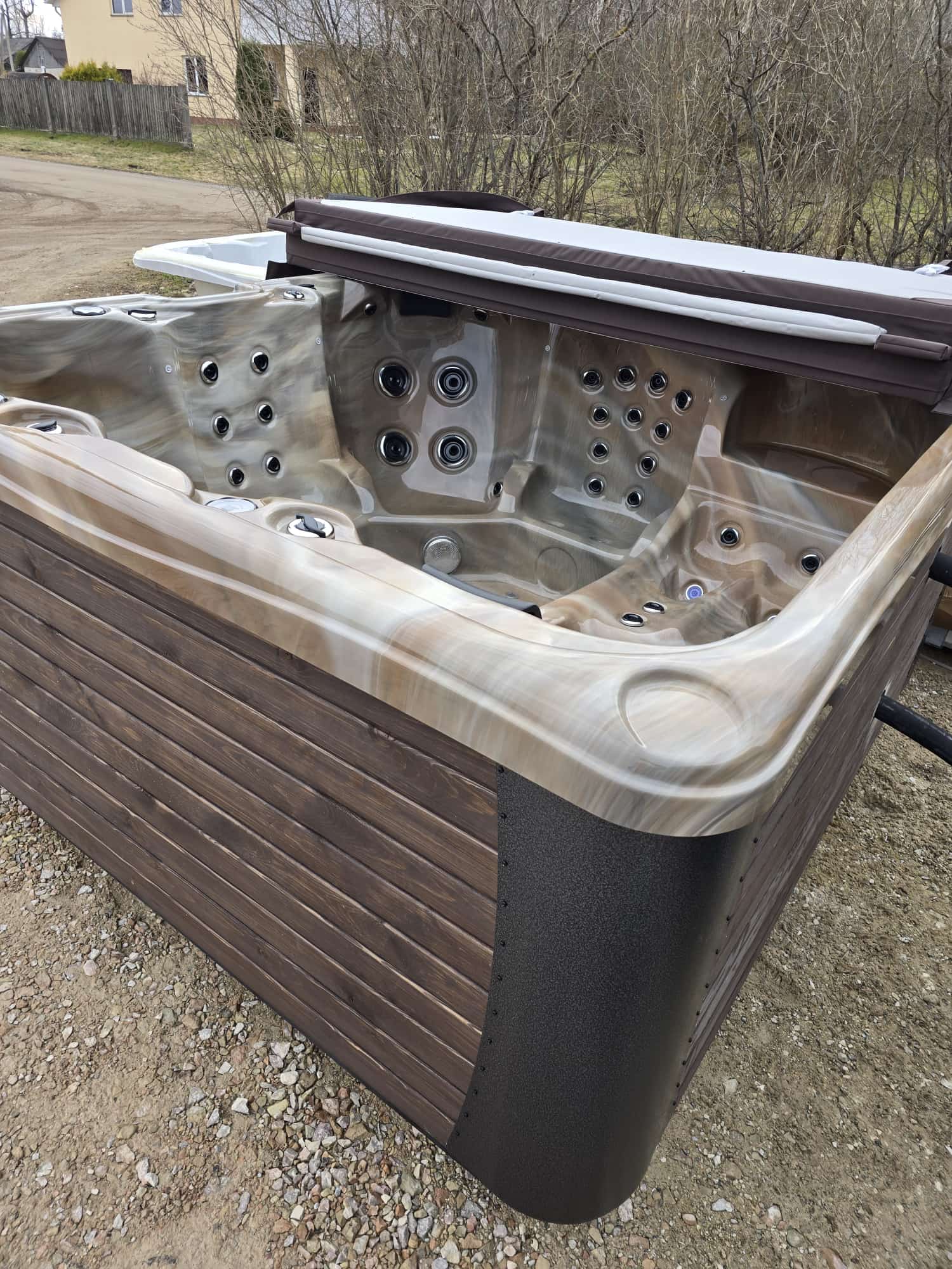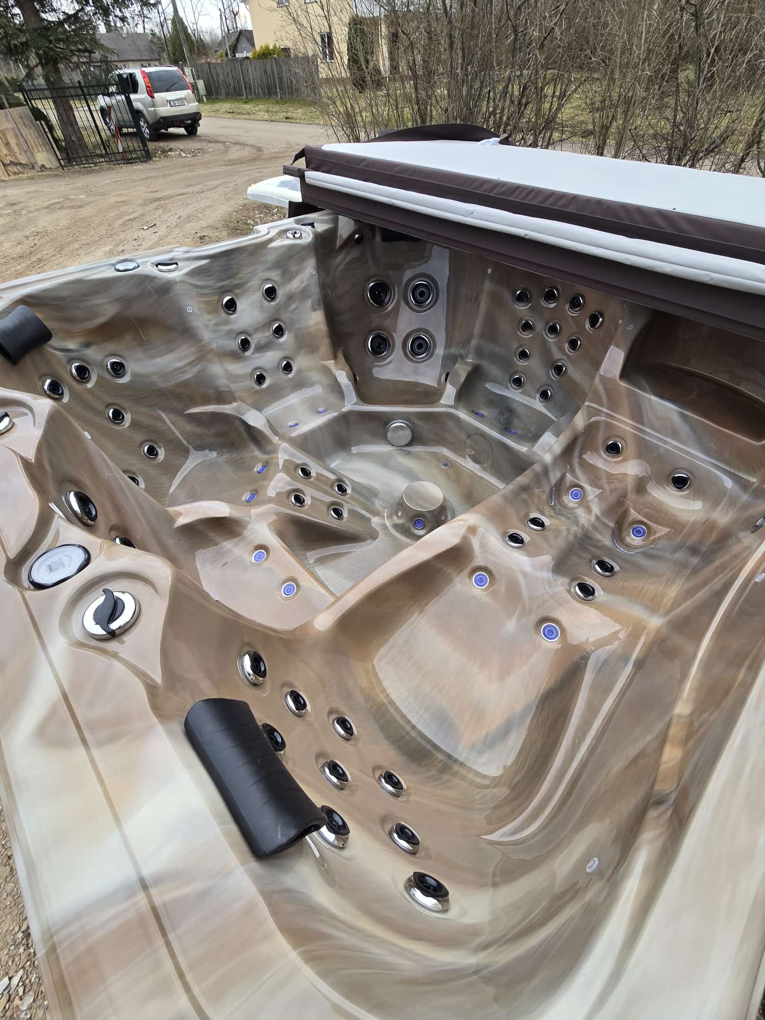 Gaiši brūna marmora akrila vanna 220x220cm, 95cm augstums, siltināta ar termoputām (6vietas) |